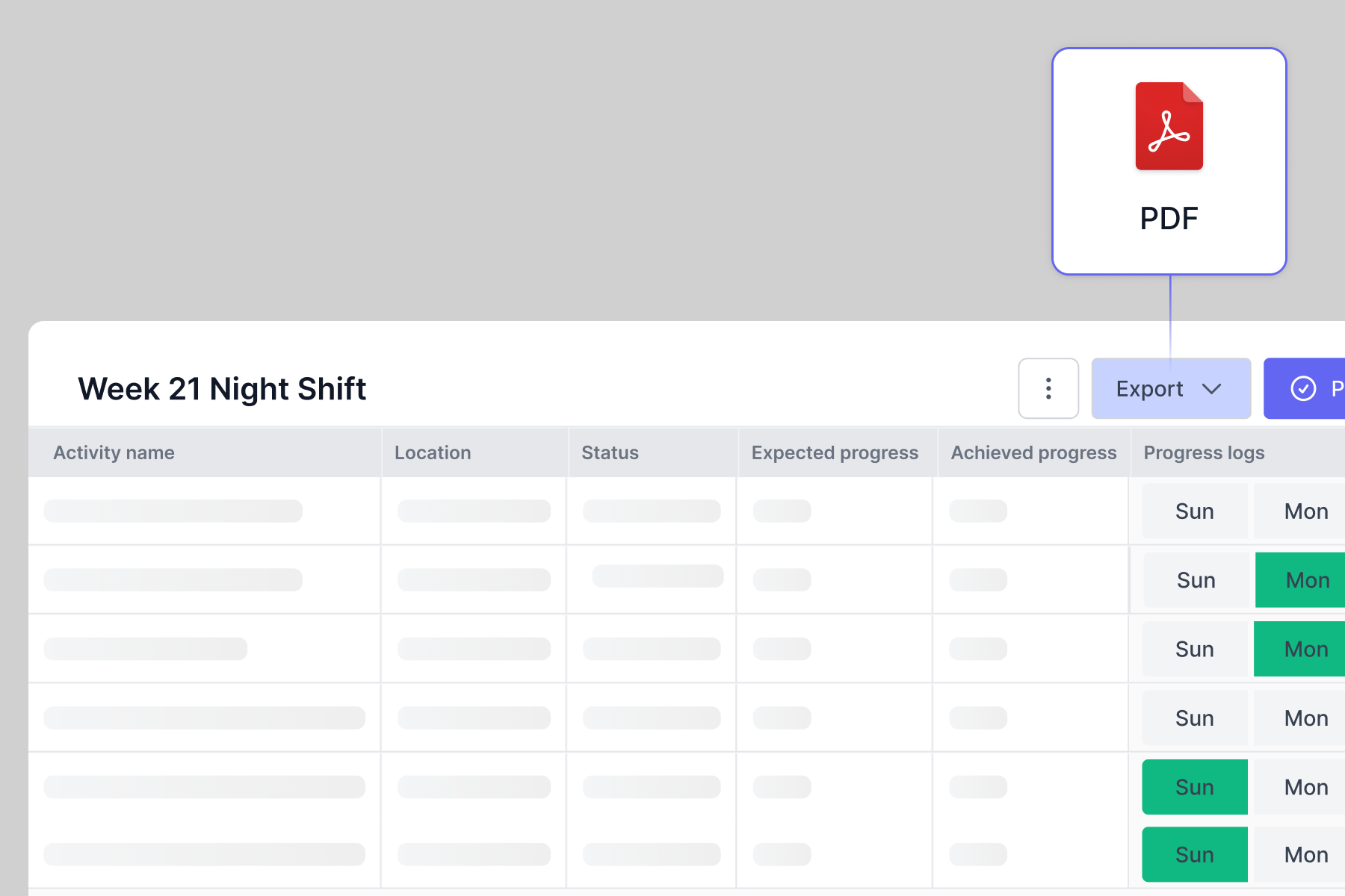 You can also export progress data to create visual reports or update formal project dashboards. The information is structured and ready to use, not scattered across emails and verbal updates.